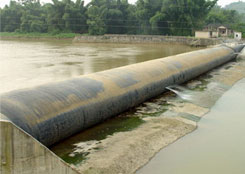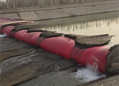 橡膠壩使用壽命短(橡膠壩采用的是再生橡膠原料,壩袋易老化,容易被上游漂浮物或尖銳物損壞,從而降低使用壽命);運行管理難度大(洪水過后一旦壩面淤積較厚,要求人工清理,否則壩袋不能正常升起蓄水,增加了后期的人工費用)。充水式橡膠壩冬季冰凍容易損壞壩袋,而充氣式橡膠壩不能調(diào)節(jié)壩高。